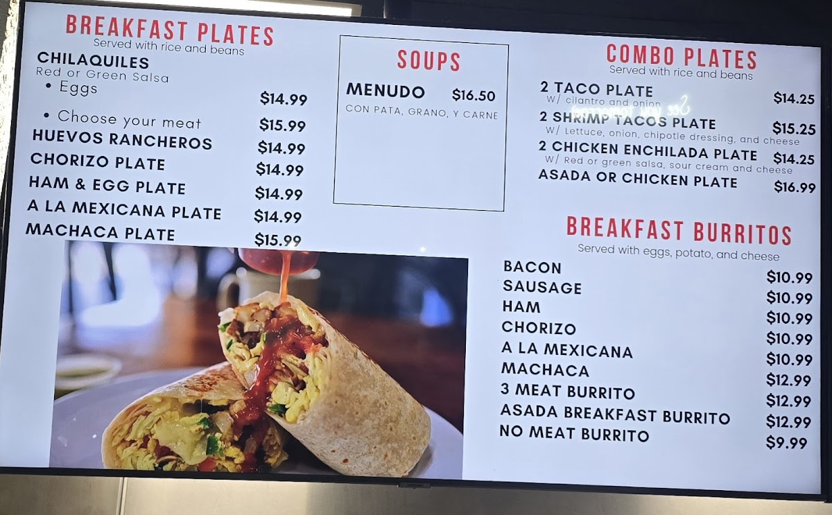 Popular Dishes: Dive into their delicious tacos, where each bite is a delightful explosion of flavor. Try the Grilled Shrimp Taco ($6.75), topped with crunchy lettuce, zesty red onions, and creamy mozzarella cheese, or savor the Carne Asada Taco ($6.25) garnished with fresh cilantro and onions—each crafted to perfection. For something refreshing, don’t miss out on their Shrimp Salad ($18.95), piled high with refried beans, jack cheese, and complemented with guacamole and sour cream on the side.
